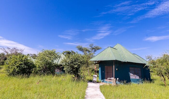 Guests stay in permanent tented chalets with brick-built bathrooms, showers, comfortable beds and their own veranda with a view of the landscape. The furnishings are simple, functional and well-kept with wood, stone and a classic safari ambience. The central area includes a restaurant with indoor and outdoor seating, a bar, a lounge and an open-air fireplace. Solar energy provides the basic supplies.