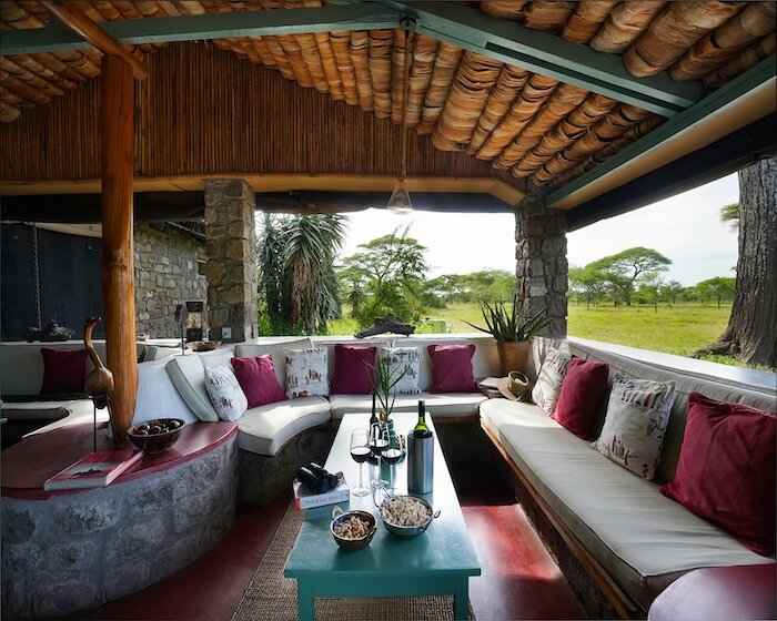 Guests stay in solid natural stone bungalows with a private terrace and views of the countryside or the lake. Each room has its own bathroom, comfortable beds and functional furnishings. In the main area there is a dining room, a bar and a cozy lounge with a fireplace. Ndutu Safari Lodge offers simple comfort in a classic style and focuses on the essentials.