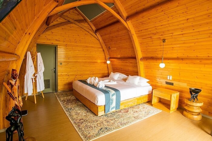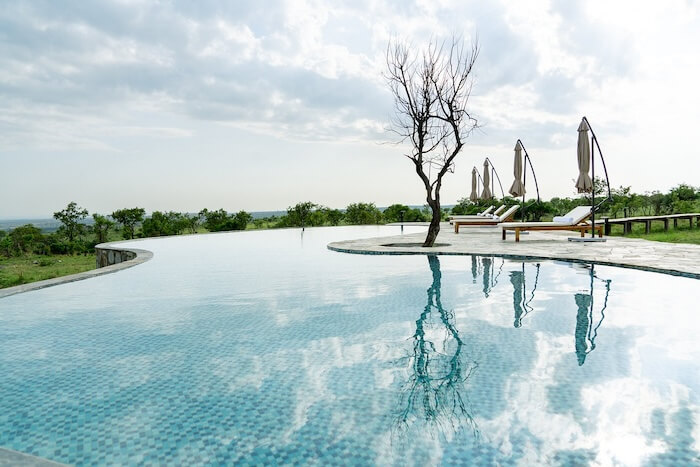 Guests stay in spacious tented suites with a brick-built bathroom, shower, comfortable beds and a private veranda with a view of the landscape. The furnishings are simple, functional and designed with warm colors and natural materials. The central area includes a restaurant with an outdoor area, an open lounge, a small bar and a fireplace. The facility is powered by environmentally friendly solar energy.