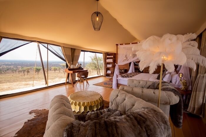 The lodge is located in the central Serengeti, close to the Seronera Valley, one of the animal-rich core zones of the national park. The area is open, vast and known for year-round game viewing, including lions, elephants and large herds of wildebeest. Serengeti Luxury Retreat is slightly elevated and offers sweeping views over the savannah and direct access to excellent game viewing areas.