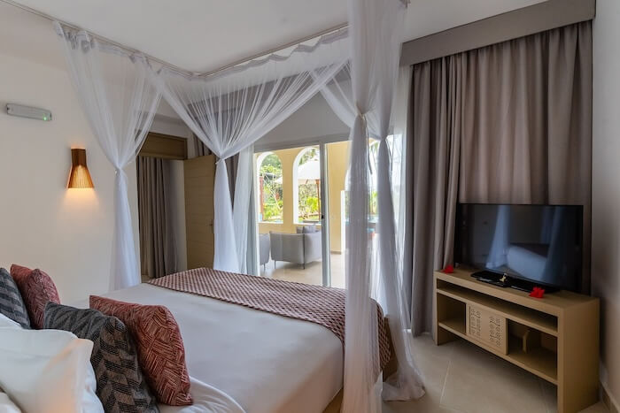 The rooms at the TUI BLUE Bahari Zanzibar are comfortable, modern and spacious with private bathroom, air conditioning, comfortable beds and balcony or terrace. The furnishings combine African style elements with clear, contemporary design. The complex includes several pools, a spa, a fitness area, various restaurants serving international and regional cuisine and a bar with a view of the sea.