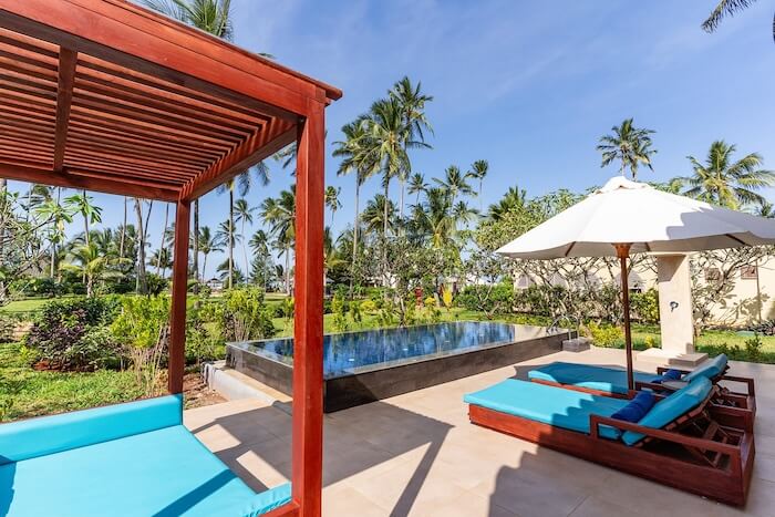 The TUI BLUE Bahari Zanzibar is a high-quality beach resort with Arabian-Zanzibari architecture, spacious gardens and a direct seafront location. The accommodation offers a comprehensive all-inclusive concept, modern facilities and a variety of retreats for relaxing days under the palm trees. The atmosphere is open, cultivated and designed for relaxation in a stylish setting.