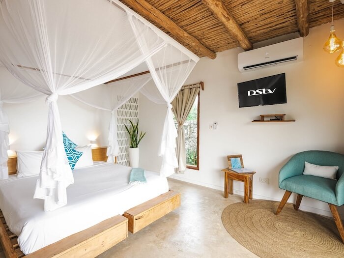 The Zanbluu Beach Hotel is a stylish, modern accommodation with a quiet location and panoramic views of the sea. The complex combines simple elegance with African design elements and creates a relaxed, open atmosphere. If you are looking for accommodation with a sophisticated design, personal character and a natural ambience, you will find it here.