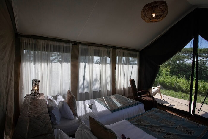 Las espaciosas tiendas están cómodamente amuebladas con acogedoras camas, cuartos de baño privados y elegantes interiores. Cada tienda tiene una zona de estar cubierta con vistas al entorno natural. La zona central incluye una acogedora tienda comedor, un salón y lugares para relajarse al aire libre. El Nyikani Migration Camp Ndutu combina el confort con la sensación de estar en plena naturaleza.