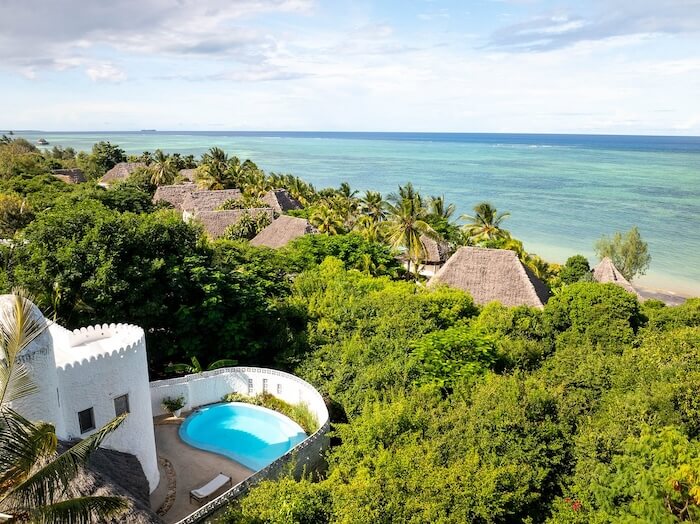 Situado en lo alto de la interminable playa de Kiwengwa, el hotel ofrece una impresionante vista del océano Índico. La posición elevada garantiza brisas agradables y una maravillosa vista panorámica, mientras que a la playa de arena fina se accede por una escalera privada. Kiwengwa en sí es un tranquilo pueblo costero con varios restaurantes y opciones de excursiones en las inmediaciones. También es fácil acceder a los mercados locales o hacer excursiones en barco.