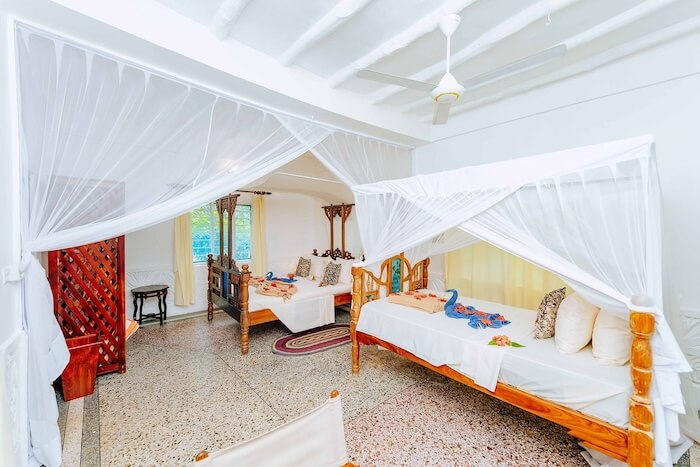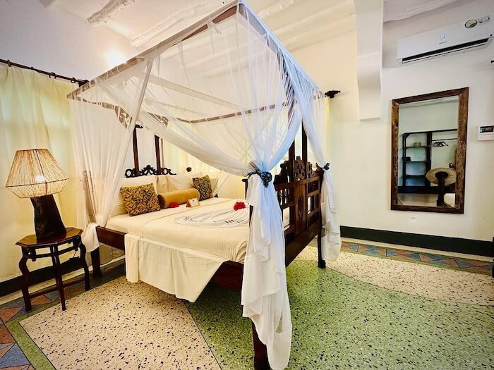 El Pongwe Beach Hotel impresiona por su ubicación apartada, su proximidad directa al mar y su diseño cariñosamente sencillo. El pequeño tamaño del complejo garantiza mucha intimidad, mientras que el estilo natural proporciona una auténtica experiencia isleña. Cualquiera que busque un refugio tranquilo donde el sonido del mar marque el ritmo lo encontrará aquí.