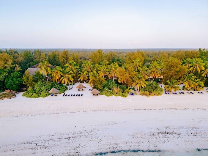 Situado en una bahía protegida cerca de Pongwe, el hotel ofrece uno de los tramos de playa más tranquilos de la isla. La playa de arena fina, el agua cristalina y las palmeras crean una estampa de postal, a menudo sin bullicio ni barcos que pasen. La solitaria ubicación garantiza paz y relajación, pero es fácil organizar excursiones a otras partes de la isla, como las rutas de las especias o el bosque de Jozani.