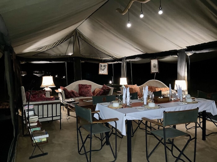 Die Gäste wohnen in funktional eingerichteten Zelten auf Holzplattformen mit eigenem Bad, Dusche, bequemen Betten und einer kleinen Veranda mit Blick in die Umgebung. Die Ausstattung ist schlicht, zweckmäßig und gepflegt – mit warmen Farben und Safariatmosphäre. Der zentrale Bereich des Camps umfasst ein großes Speisezelt, eine gemütliche Sitzecke im Freien und eine Feuerstelle für den Austausch am Abend. Die Stromversorgung erfolgt nachhaltig über Solarenergie.
