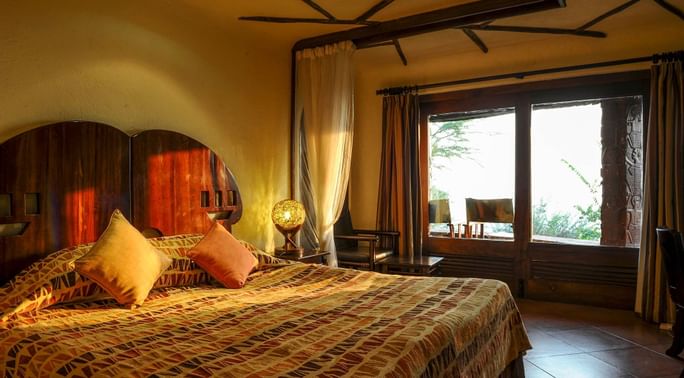 Die Zimmer sind in landestypischen Rundbauten untergebracht und bieten private Terrassen, gemütliche Betten, ein eigenes Bad und eine warme, afrikanisch inspirierte Einrichtung. Der zentrale Bereich der Lodge umfasst ein großes Restaurant mit Panoramablick, eine Bar, eine offene Lounge und einen Pool zur Abkühlung. Die Serengeti Serena Safari Lodge kombiniert traditionellen Stil mit praktischer Ausstattung für erholsame Stunden nach der Safari.
